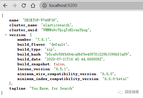 前往 ES 官方 https://www.elastic.co/cn/downloads/elasticsearch 进行,如 windows 版本只需要下载安装包,启动 elasticsearch.bat 文件,浏览器访问 http://localhost:9200