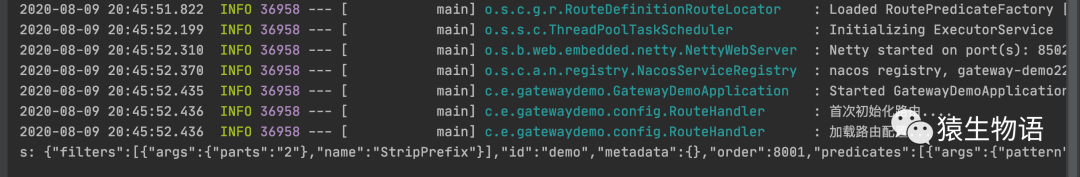 启动 redis、nacos、网关服务,我们可以看到项目启动后加载了路由信息: