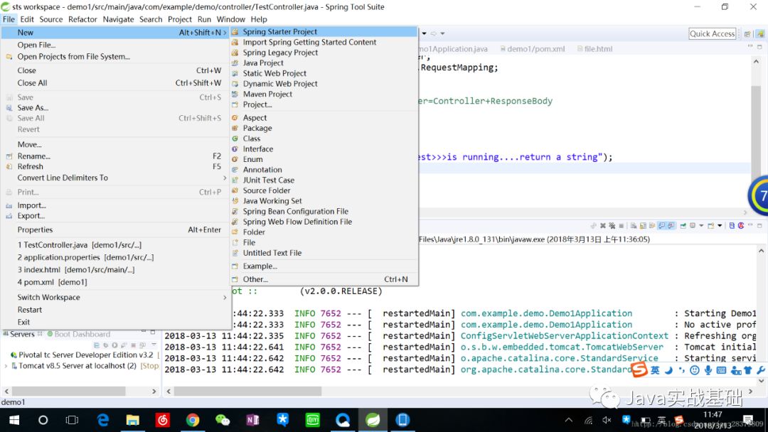 然后点击左上角,File——new——Spring Starter Project。下面是详细步骤: