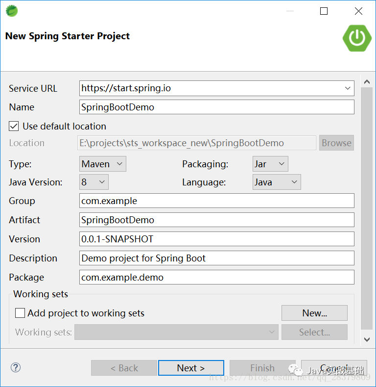 注:IDEA和STS创建springboot项目的步骤和界面是完全一样的。创建的项目结构也相近,sts创建的项目可以直接导入IDEA使用。