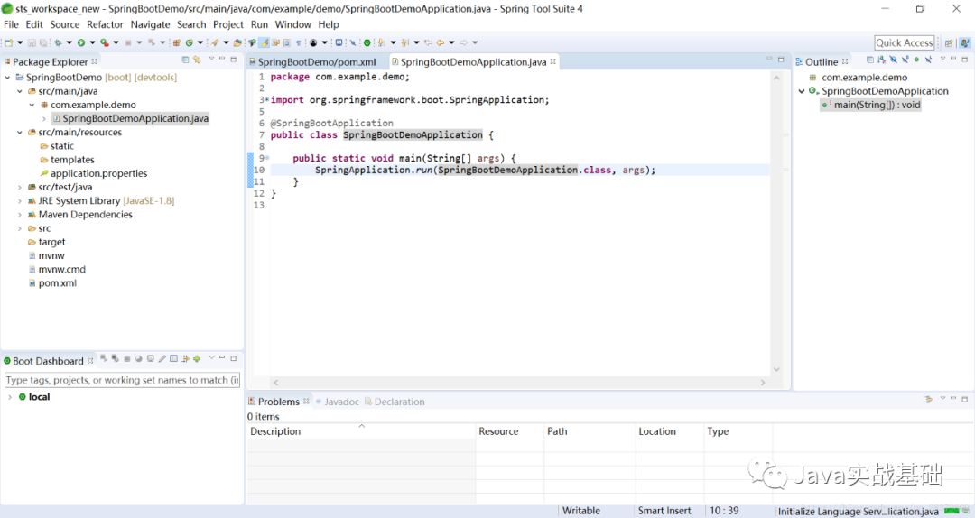 package com.example.demo;import org.springframework.boot.SpringApplication;import org.springframework.boot.autoconfigure.SpringBootApplication;@SpringBootApplicationpublic class SpringBootDemoApplication {public static void main(String[] args) {SpringApplication.run(SpringBootDemoApplication.class, args);}}