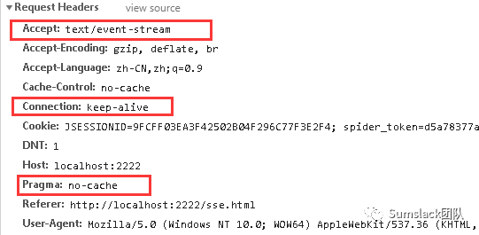 我们可以看到服务端发送到客户端的响应头必须是text/event-stream