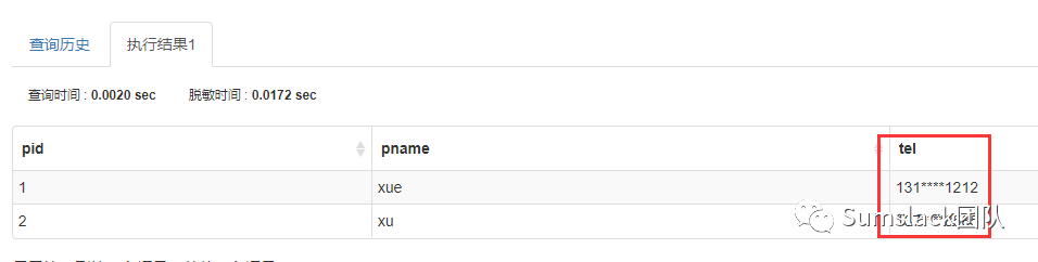 经过脱敏设置和脱敏规则后,我们在系统中查询相关字段后,得到的结果如下: