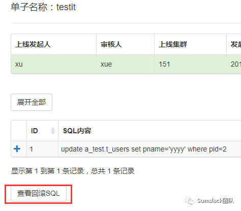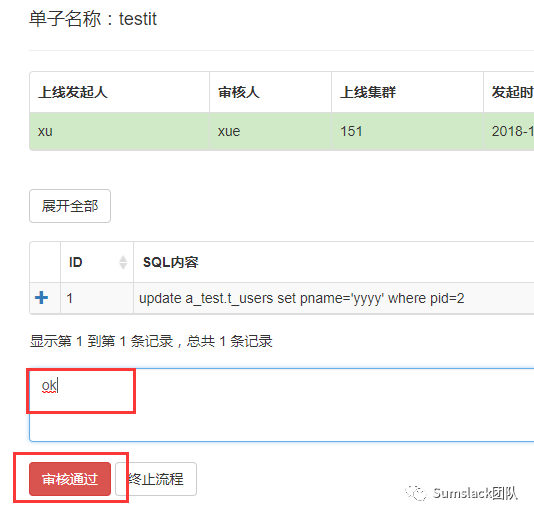 然后利用审核人账号登录系统,在SQL上线工单中就可以看到这个SQL变更: