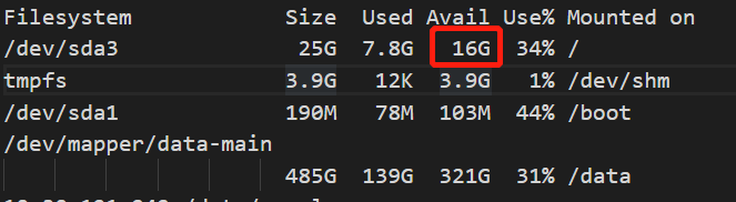 发现所在的/tmp目录却没有空间异常的情况,而相反是根目录的空间使用出现了异常,这是测试中截取到的一个空间异常的截图。