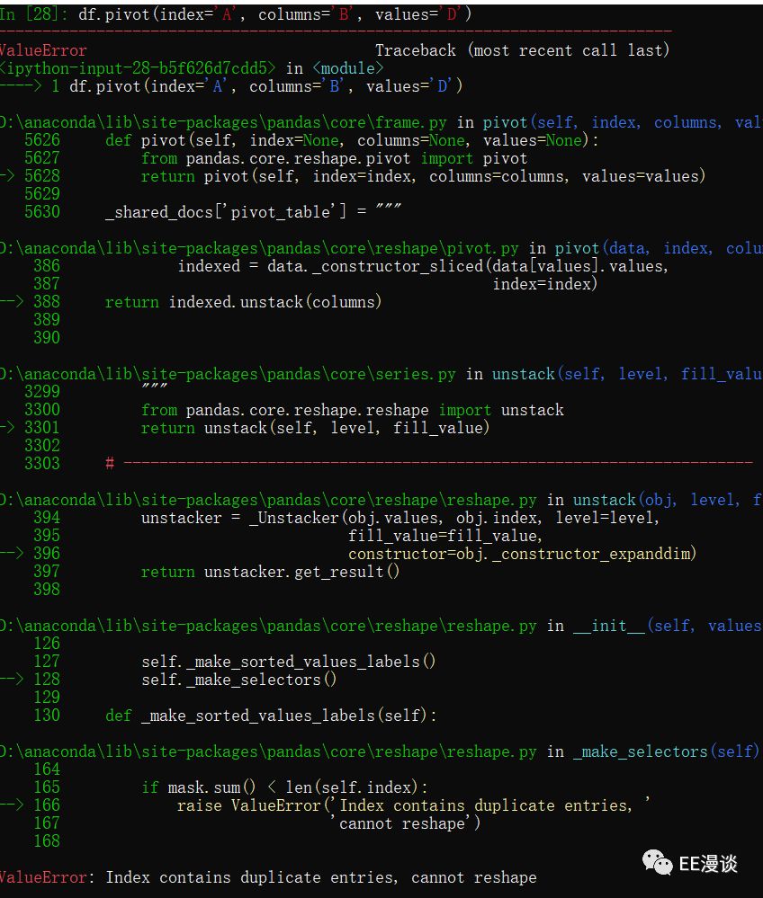 使用pivot函数,如果index或者columns中出现了多重值的情况,就会出错。