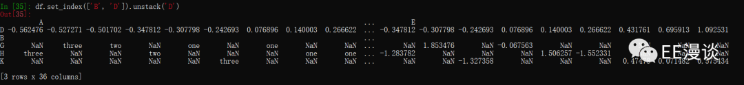 这是为什么呢?设置df 的index为A,在对df进行reshape时,A列的‘one’需要进行合并,如下图所示