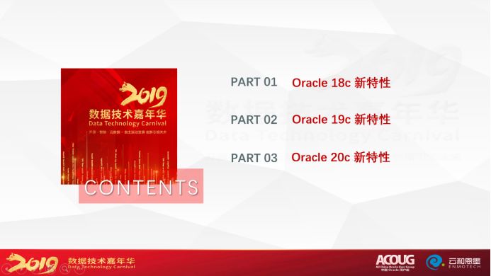 在这次数据技术嘉年华大会上,我和大家分享的是Oracle最新版本的一些重要的新特性。