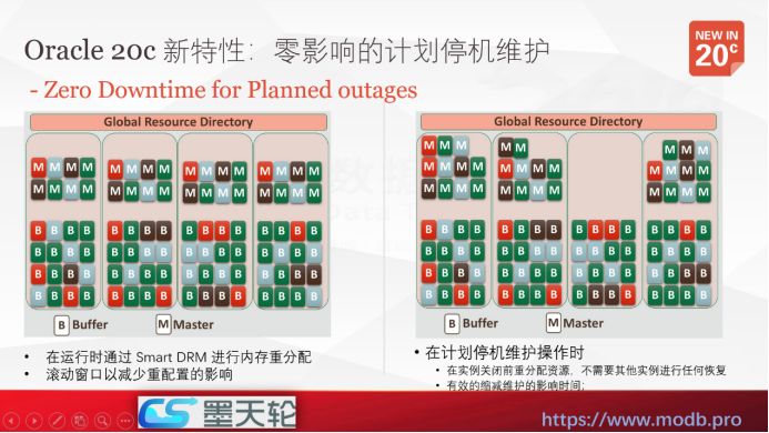 对于RAC而言,一旦发生节点关闭,数据库会进行资源的重组,这个过程会锁定全局资源目录,从而导致在线的操作受到短暂的影响。在20c中,对于计划内的停机,在关闭数据库之前,Oracle自动完成资源的分配,避免了其他实例的恢复操作,有效的降低了对整个系统的影响。