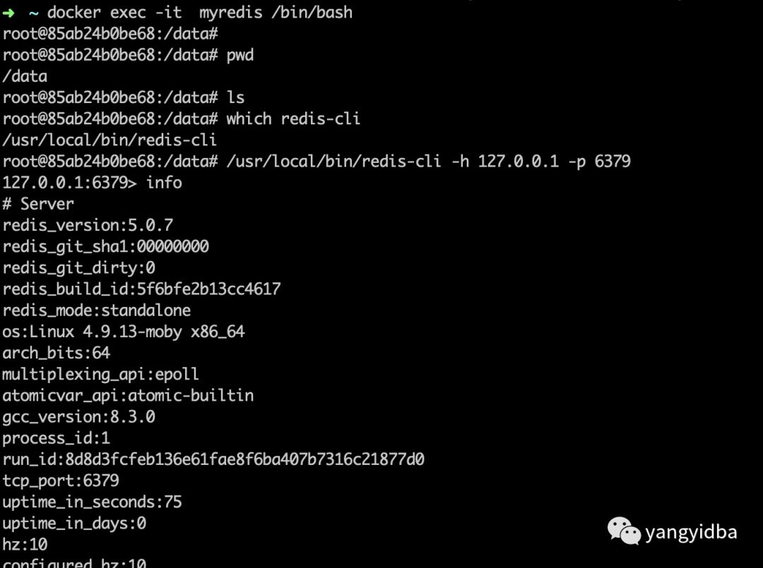 85ab24b0be68 redis "docker-entrypoint..." 18 hours ago Up 7 seconds 0.0.0.0:6379->6379/tcp myredis