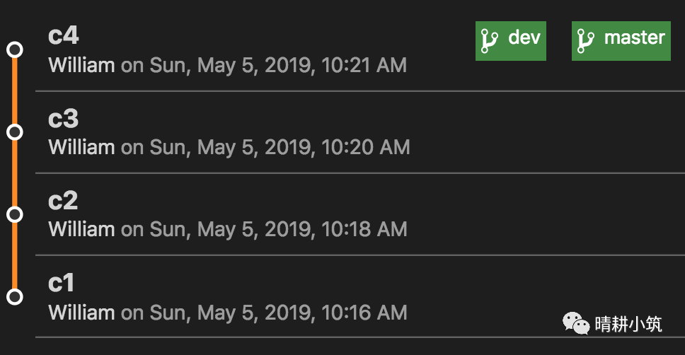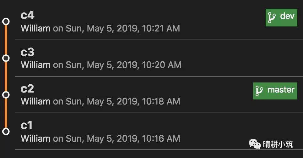 可以看到输出结果中的“Fast-forward”,这表明Git在做合并时采用的是Fast-Forward Merge。此时,再观察一下Git的提交历史: