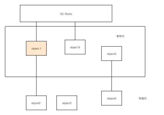 在年轻代垃圾收集中,有些对象是直接和gcroot关联的,而有些对象是通过老年代间接的和gcroot关联 如果要在一次young gc中也扫描关联了gcroot的老年代才能进行,那么会增大回收器扫描的效率,如下图所示