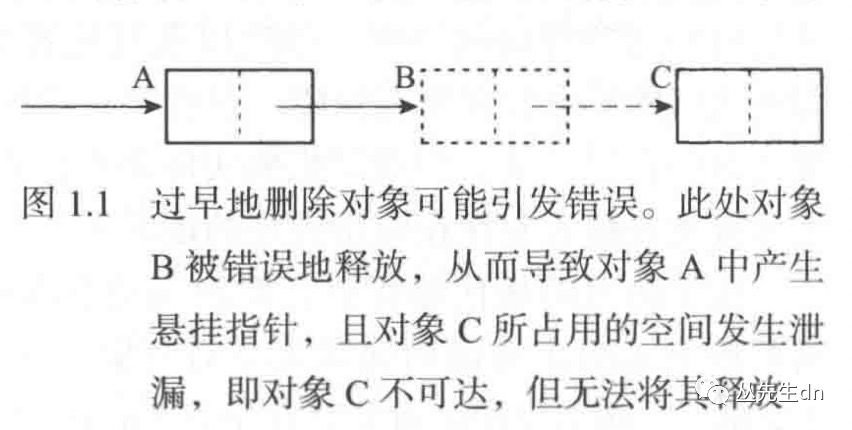 1 开发者可能过早的回收依然在引用的对象,这种情况将引发悬挂指针问题。