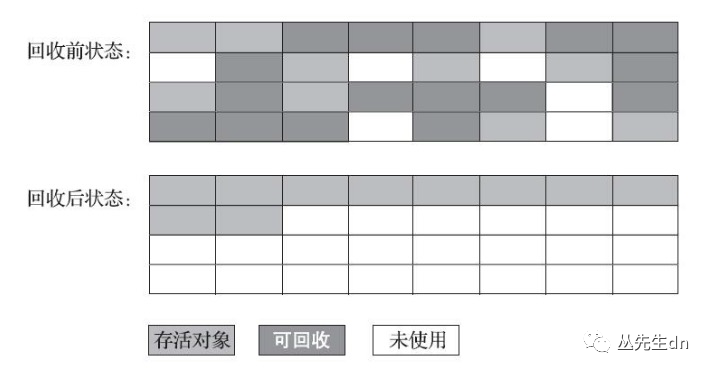 任意顺序实现简单,且执行速度快,特别是所有对象大小相等的情况,但任意顺序整理可能会将原来相邻的对象分散到不同的高速缓存行或者虚拟内存页中,从而降低赋值器空间局部性。所以现代compact回收器均使用滑动整理顺序