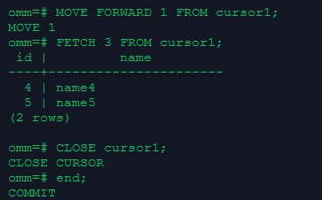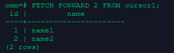 MOVE FORWARD 1 FROM cursor1;--FETCH抓取数据,抓取头3行到游标cursor1里