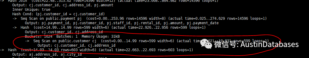 seq scan on public.customer.cj 说明是要全表扫描这个表,启动成本是 0 cost-0.00 这个节点的成本是14.99 评估出需要扫描的夯实 599行,行的列数是6 ,实际上执行总,启动成本是0.021 节点的成本是10.931