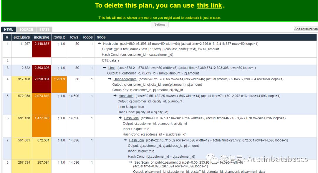 可以想象,看到上面的图,有人已经觉得有点意思,想继续了解一下。首先上面的图是将你的执行计划,上传到某个网站得到的效果。