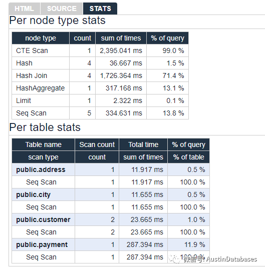 下面汇总的图,可以让我们大致迅速了解我们的表有几个seq scan 时间是多少,扫描了表的百分之多少。我想如果这个结果还不能让你满意的话...