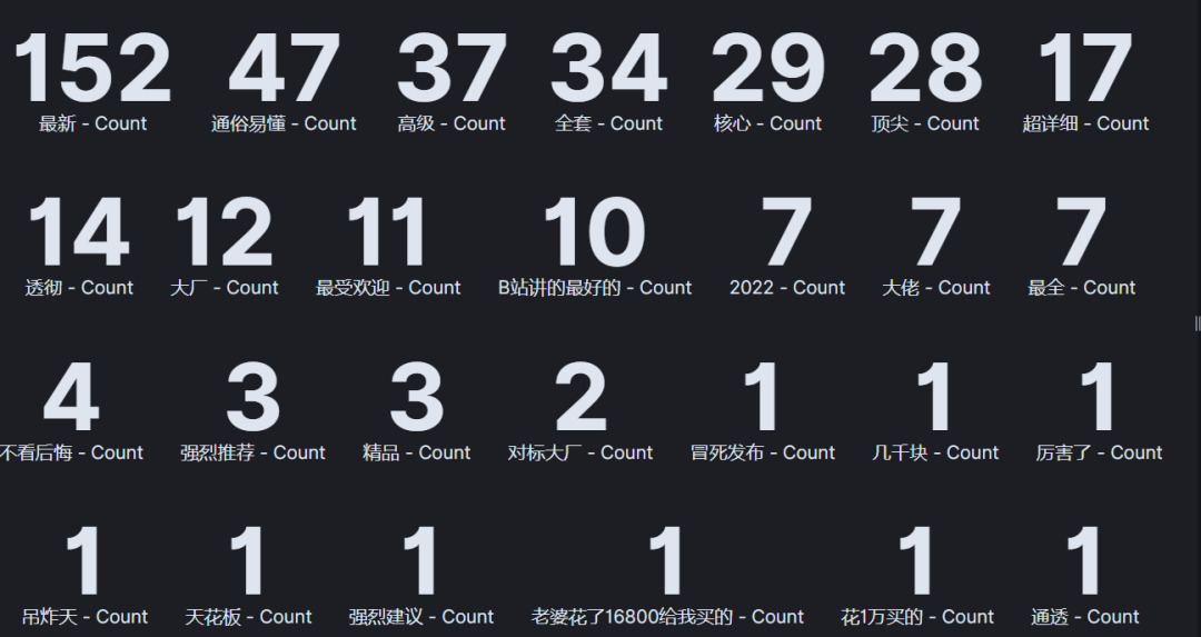 声明:处于好奇的原因,对B站1000+视频标题进行了分析,如上内容只是为了好玩,没有别的用途。