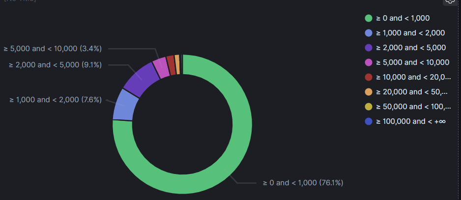 76.1% 的视频观看量不足1000人次。 96.2% 的视频观看量不足10000人次。 仅 4% 的视频观看量超过 10万人次。
