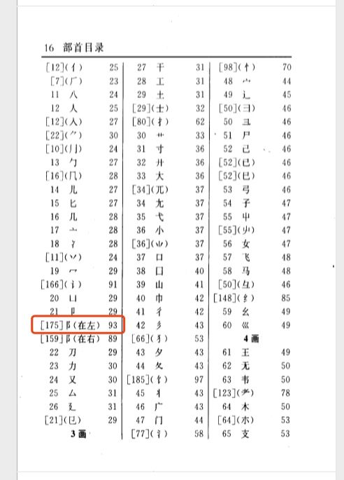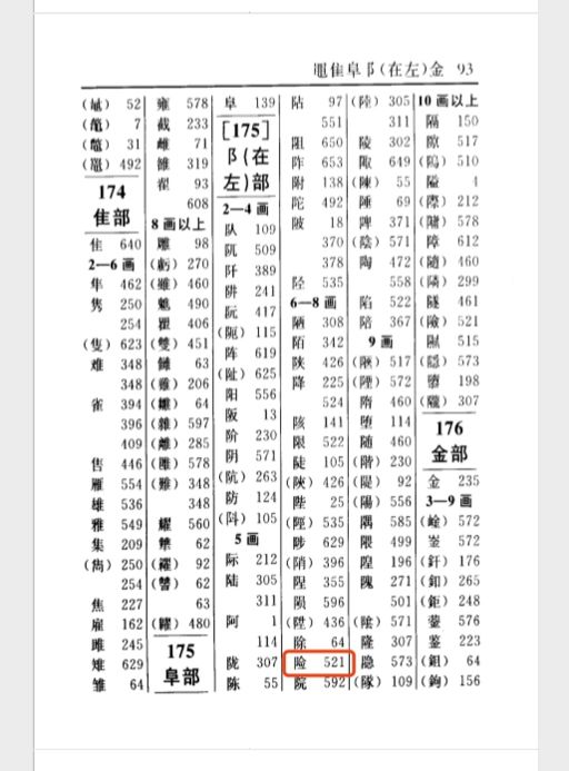 字真正的页码,我们还需要根据右边的页码找到对应部首在检字表中的位置。找到第93页的检字表后我们就可以根据 险