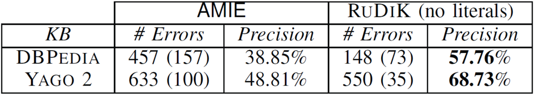 [2] Ortona,Stefano, Venkata Vamsikrishna Meduri, and Paolo Papotti. "Rudik: Rulediscovery in knowledge bases." Proceedings of the VLDB Endowment 11.12(2018): 1946-1949.