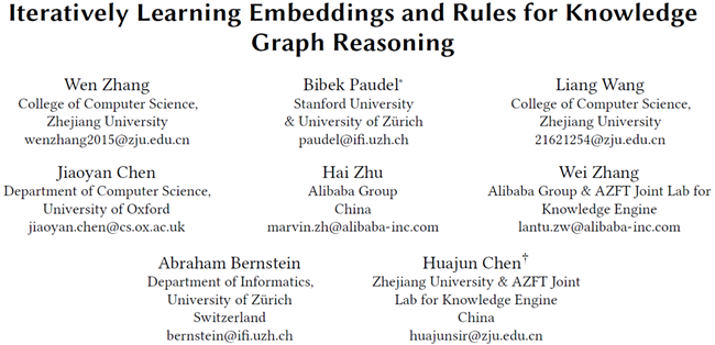 [3] Zhang,Wen, et al. "Iteratively learning embeddings and rules for knowledgegraph reasoning." The World Wide Web Conference. 2019.