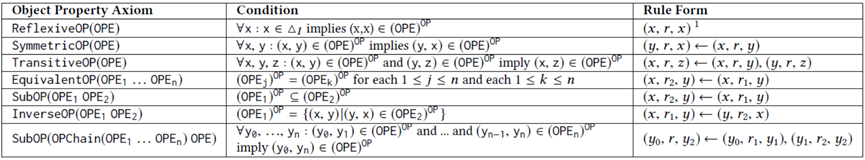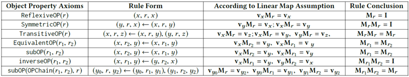 ,在样本图中比较数字、日期之间大小关系,比较字符串之间的≠关系;2)同一样本图中,添加相同type的实体之间的≠关系;规则举例:3)常量替换。当且仅当对G中被r覆盖的每对(x,y),其中v都能被实例化为同一实体e,则用e替代变量v。规则举例:构造出所有候选规则后,接下来要对规则进行选择。本文定义了规则的边际权重,以此为依据对规则进行选择:本文采用贪婪策略进行算法选择,给定生成集G,验证集V,所有候选规则集R,每次迭代选择最小边际权重的规则添加到R’。迭代的终止条件为:最后,受A*算法的启发,本文定义了对规则边际权重的估计方法,无需生成所有候选规则,在路径扩展过程中每次选择最有希望的路径。总体算法如下:本文在DBpedia,YAGO3,WikiData上进行了实验,分别挖掘正、负规则情况见下表:本文方法与AMIE模型在YAGO和DBpedia数据集上挖掘的正规则预测结果见下图:从实验结果可以得出,虽然本文挖掘规则的数量比AMIE模型更少,但预测结果的精确率上优势明显。文章三:面向知识图谱推理的迭代知识表示学习和规则学习本文挖掘的目标是本体公理,作者选取了七条与对象属性相关的表达式公理,并将其转化为规则形式:本文认为规则推理方法准确性高,可解释性强,但搜索空间较大效率不高,知识表示推理方法扩展型强,效率更高,但在稀疏实体上学习效果较差。于是采用了迭代学习思想,二者互相补充。规则从知识表示中通过合理剪枝策略学得,知识表示从现有三元组及规则预测的三元组中学得。框架结构见下图:模块一:表示学习。表示学习模块采用现有的基于线性映射假设的方法。损失函数为:模块二:公理归纳,即通过关系表示归纳公理集合,并赋置信度。首先是候选公理生成,包含以下三步:1)生成公理or部分公理,用确定的关系作为规则头;2) 通过随机选择k个三元组来补全部分公理。选择关系r相连的三元组(e', r, e''),使用与e', e''直接相连的关系替换公理中的r', r'';3)计算每个公理的支持度,大于1则加入候选公理集。模块三:公理注入,即通过公理预测稀疏实体相关的新信息,将其用于下次迭代中的知识表示学习模块。预测结果的置信度为推理出该结果的公理对应的置信度:本文在四个稀疏数据集上进行了实验,并分别与基于知识表示的方法和基于规则挖掘的方法进行比较。与基于知识表示方法的结果见下表:可以得出,本文模型挖掘出规则进行链接预测的结果优于表示学习的方法,而且本文挖掘出的高质量规则,数量上也多于经典的规则挖掘模型AMIE+。面向知识图谱的规则挖掘方法,由于其规则可解释性强,准确性高等优点,持续受到广泛关注,但面临扩展性差,规则的复杂性及表达能力有限等问题。传统的规则通常只关注谓词之间的关系,从以上介绍的方法可以看出,实体及属性信息的合理运用,有助于增加规则表达的复杂性,优化规则搜索效率,因此具有较大研究价值。但目前在规则挖掘过程中对丰富的实体、属性等语义信息的使用还比较初步,有待进一步尝试和探索。[1] Galárraga,Luis Antonio, et al. "AMIE: association rule mining under incompleteevidence in ontological knowledge bases." Proceedings of the 22ndinternational conference on World Wide Web. 2013.