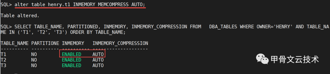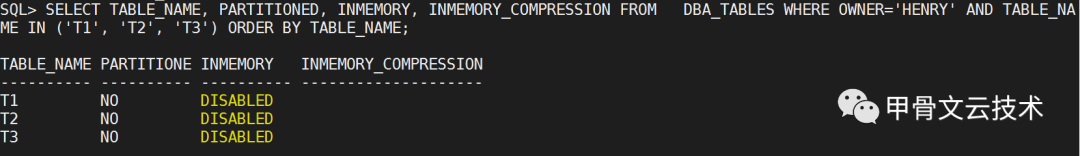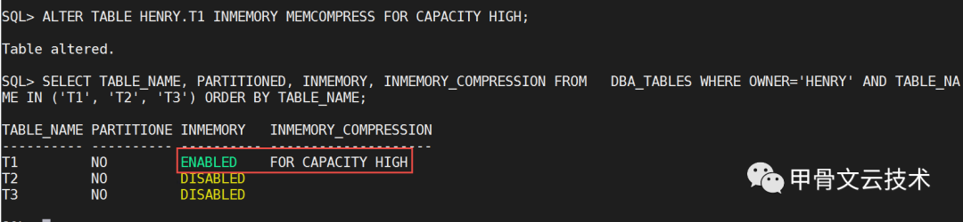 第三步:修改T1表的INMEMORY属性,然后查看表的IM状态