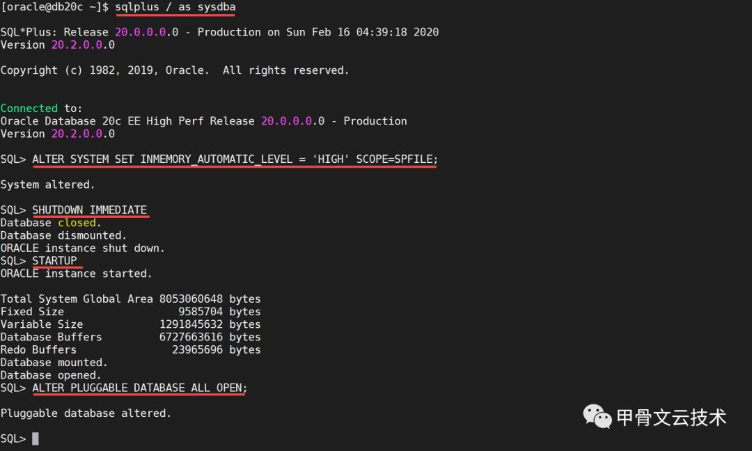 第四步:来到CDB设定INMEMORY_AUTOMATIC_LEVEL参数并重启数据库