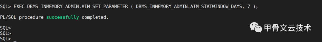 您可以通过DBMS_INMEMORY_ADMIN设定Automatic In-Memory只考虑过去一个月或者过去一周的使用情况(统计值),来决定如何处理IM对象。下面的例子中,设定时间窗口为7天,这个参数默认是1天。