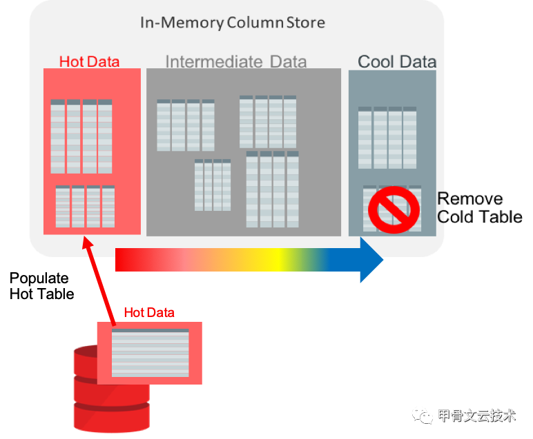 在之前的数据库版本就可以使用的INMEMORY_AUTOMATIC_LEVEL:LOW和MEDIUM参数依旧有效。当我们将参数设定为HIGH之后,系统使用类似heatmap这样的技术对segments做访问跟踪以及使用columns统计信息来决定哪些对象将被放入内存列存储,您不再需要决定哪些数据对象要添加INMEMORY选项了。此外,AIM将自动压缩列中的数据,这些技术的使用将让IM列存储发挥最大的效能,同时也将系统性能最大化。如果您坚持不使用IM技术,您依旧可以在数据对象上使用NO INMEMORY子句。如果将这个参数从HIGH转换为其他参数,那么对象的IM属性将被设定为NO INMEMORY。