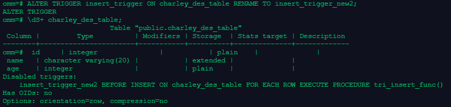 ALTER TRIGGER insert_trigger ON charley_des_table RENAME TO insert_trigger_new2;\dS+ charley_des_table;