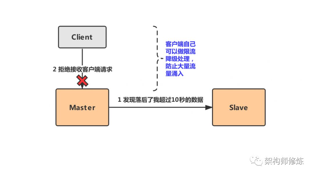 核心思想就是,一旦所有的slave节点,在数据复制和同步时延迟了超过10秒的话,那么master它就不会再接客户端的请求了,这样就会有效减少大量数据丢失的发生。