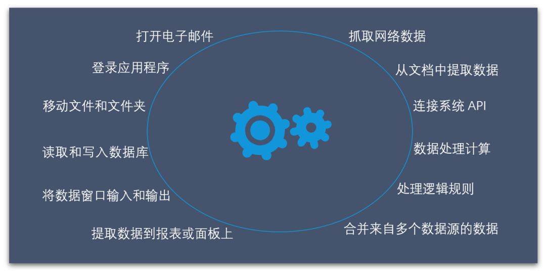 大多数办公任务是在PC上进行的,RPA可以像人一样使用操作系统应用程序。下面是我们列出的常见RPA具有的通用能力。