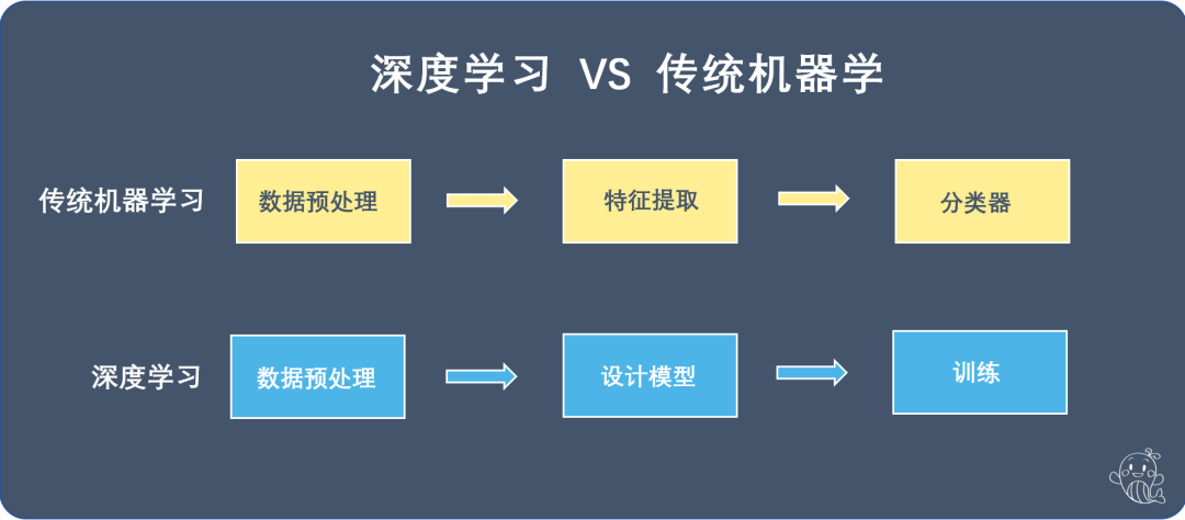 传统机器学习在数据挖掘处理中核心解决了:把特征变量和数据优化的难题从程序员转移给了程序算法。