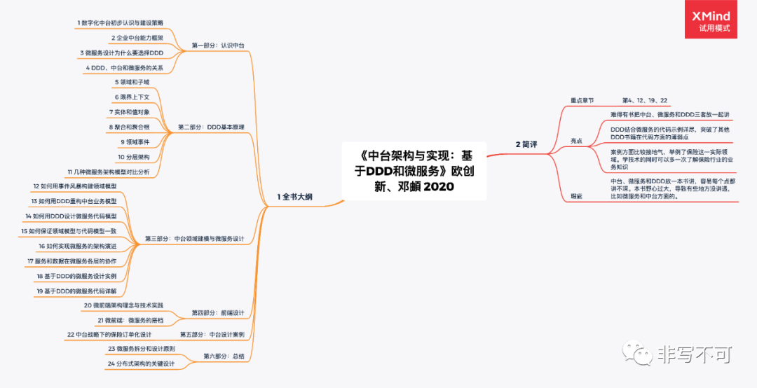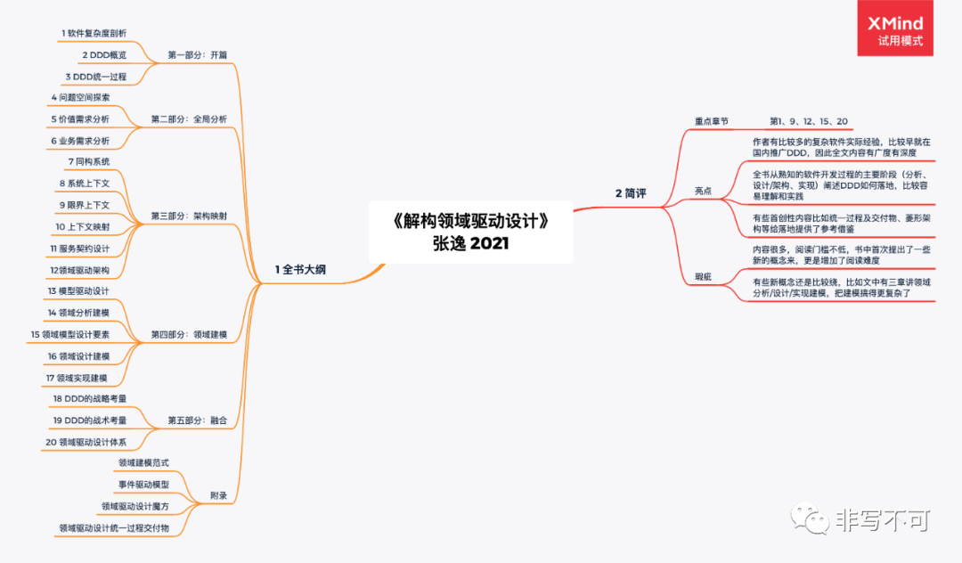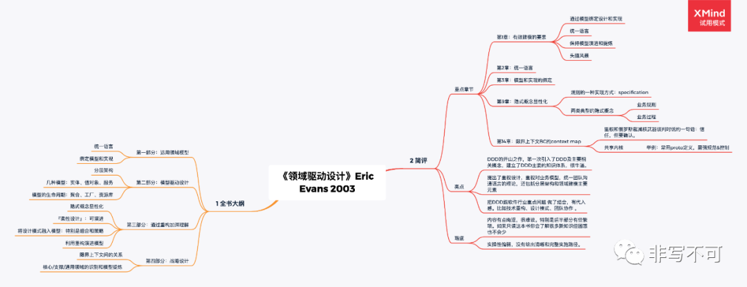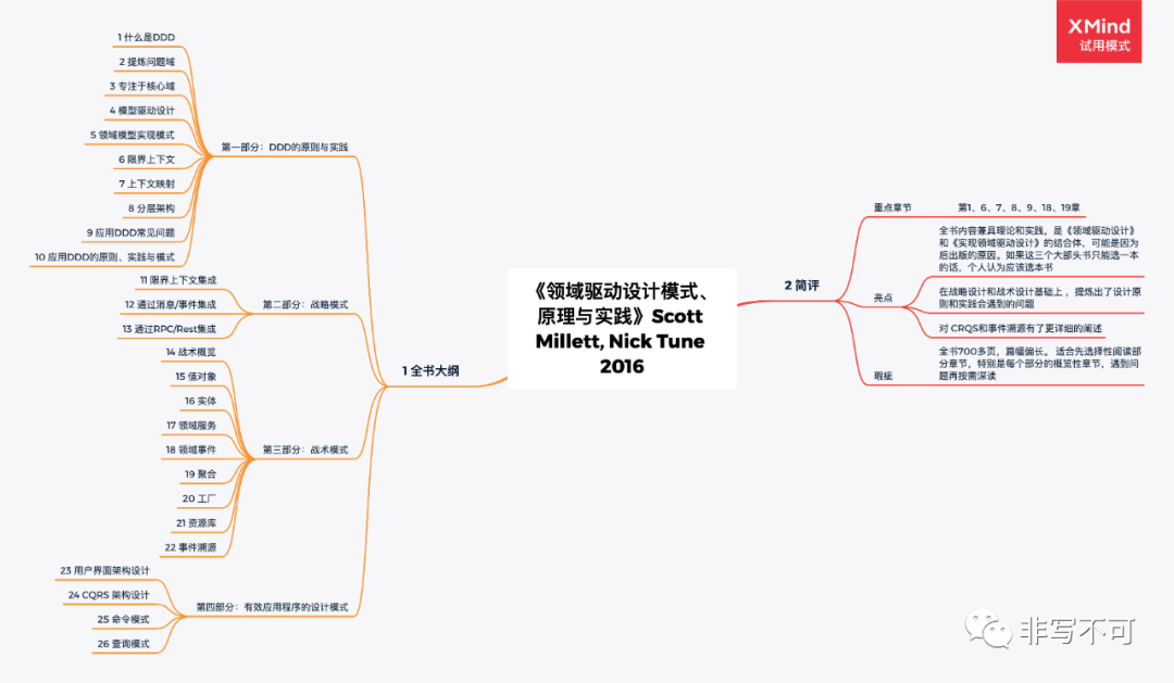 书籍往往是最系统性思考的成果,具有比较高的阅读价值。DDD从2003年开始,国内外已有不少书籍了,这里通过6本书让我们看看他人是如何总结DDD的知识体系。均以思维导图方式呈现其主要内容大纲和我的简要评述。