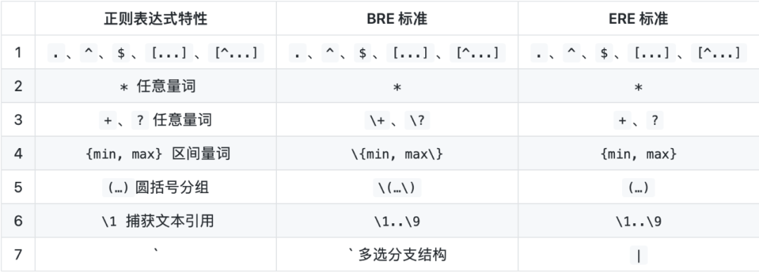 BRE标准(Basic Regular Expression基本正则表达式) ERE标准(Extended Regular Expression扩展正则表达式)