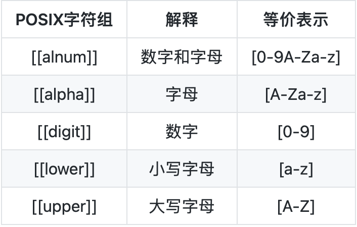 POSIX字符组详细内容