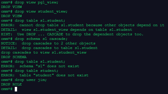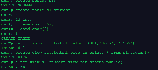 2.创建一个用户表student,并在用户表上创建视图,修改视图schema;
