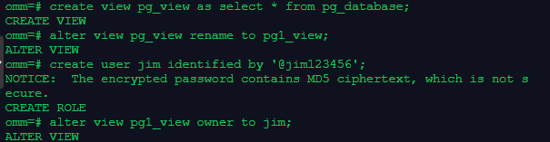 1.为系统表PG_DATABASE创建视图,重命名视图并修改owner为jim,