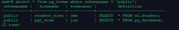 select * from pg_views where schemaname = 'tpcds' or schemaname = 'public';