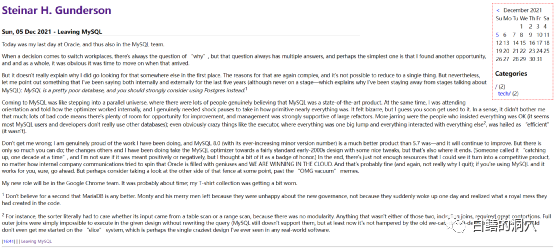 在Oracle这的几年可能Steinar积压了太多的怒火,他同时在reddit,sesse.net,the register,Hacker News等多个网站上发布了这个博客,并且引起了一大批Mysql的拥趸和反对者在上面论战。