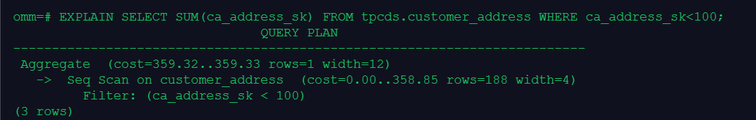 EXPLAIN SELECT SUM(ca_address_sk) FROM tpcds.customer_address WHERE ca_address_sk<100;