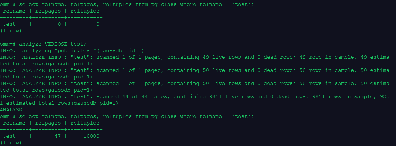 —使用ANALYZE VERBOSE语句更新统计信息,并输出表的相关信息