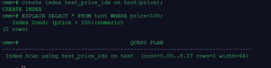 EXPLAIN SELECT * FROM test WHERE price<100;