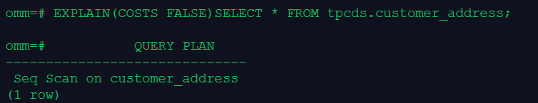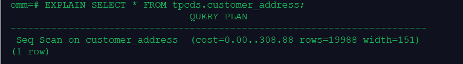 EXPLAIN(COSTS FALSE)SELECT * FROM tpcds.customer_address;