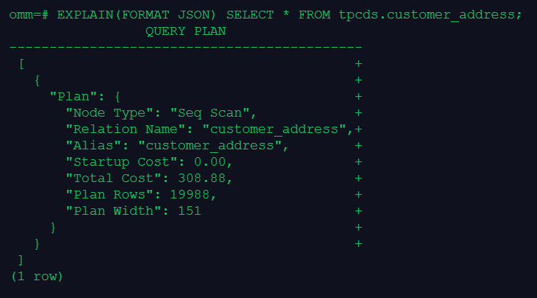 EXPLAIN(FORMAT JSON) SELECT * FROM tpcds.customer_address;