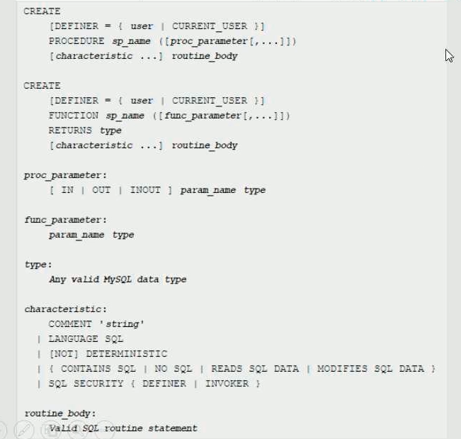 - sql security的值决定了调用存储过程的方式,取值:definer(默认)或者invoker