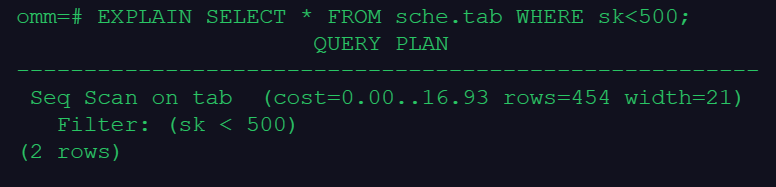 EXPLAIN SELECT * FROM sche.tab WHERE sk<500;